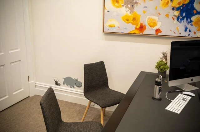 Our allergist, Dr Dzeladini, consults lots of very young patients who are sometimes frightened of their visit to the doctor. We’ve tried to make our consult and waiting areas more inviting with hygienic toys and art to distract the little ones.